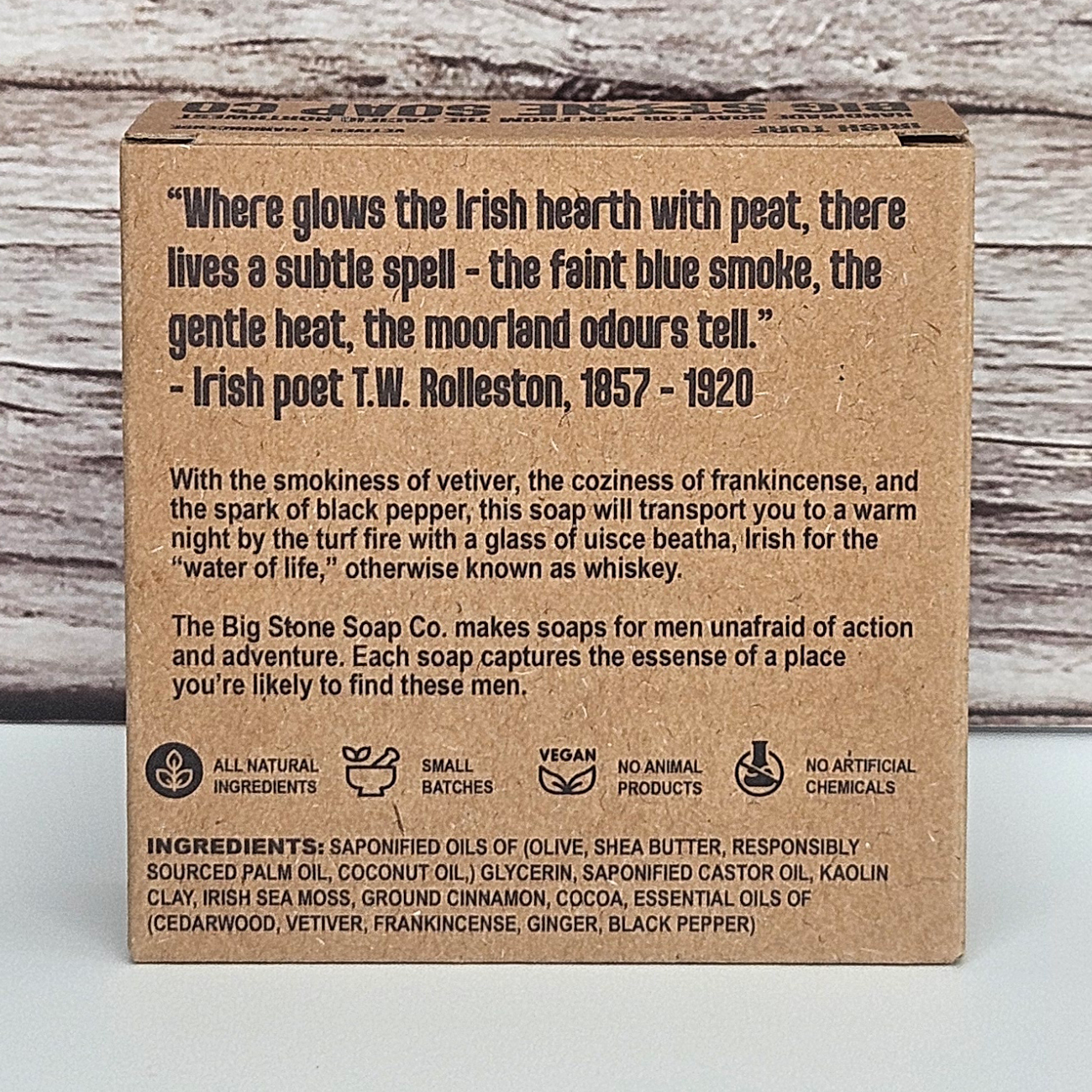 With the smokiness of vetiver, the coziness of frankincense, and the spark of black pepper, this soap will transport you to a warm night by the turf fire with a good book and a glass of uisce beatha, Irish for the “water of life,” otherwise known as whiskey.